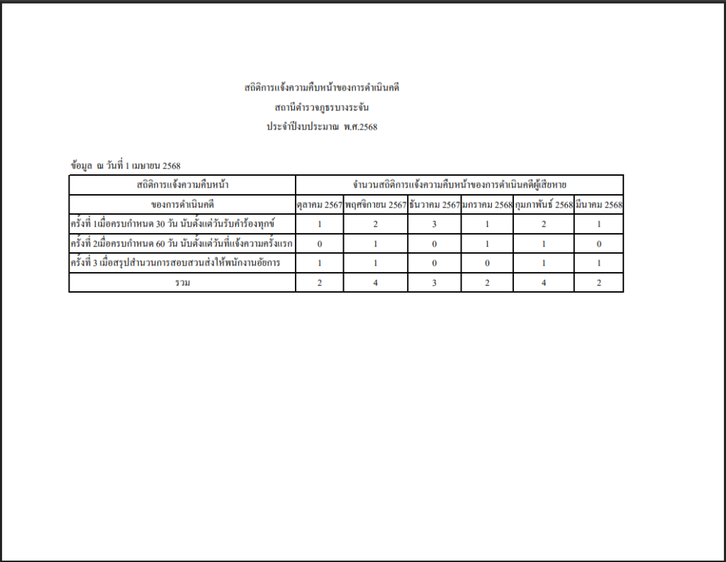 สถิติการแจ้งความคืบหน้าของคดี