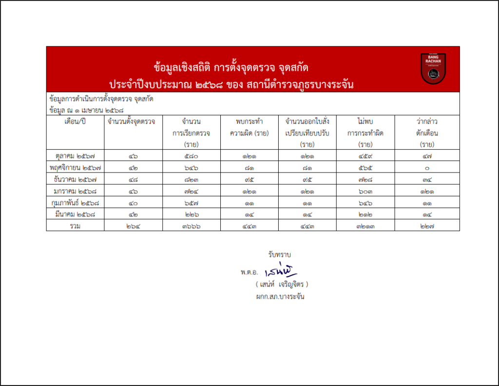 ข้อมูลเชิงสถิติ การตั้งจุดตรวจ จุดสกัด