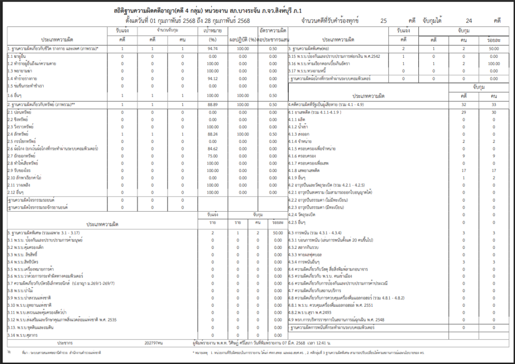 O 11 สถิติคดี 4 กลุ่ม ระบบ Crimes ต.ค.67-ก.พ.68