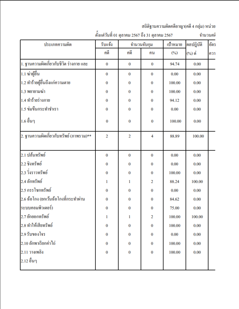 สถิติคดี 4 กลุ่ม ระบบ Crimes ต.ค.67