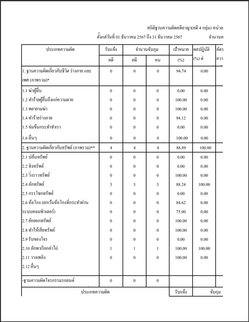 สถิติคดี 4 กลุ่ม ระบบ Crimes ธ.ค.67