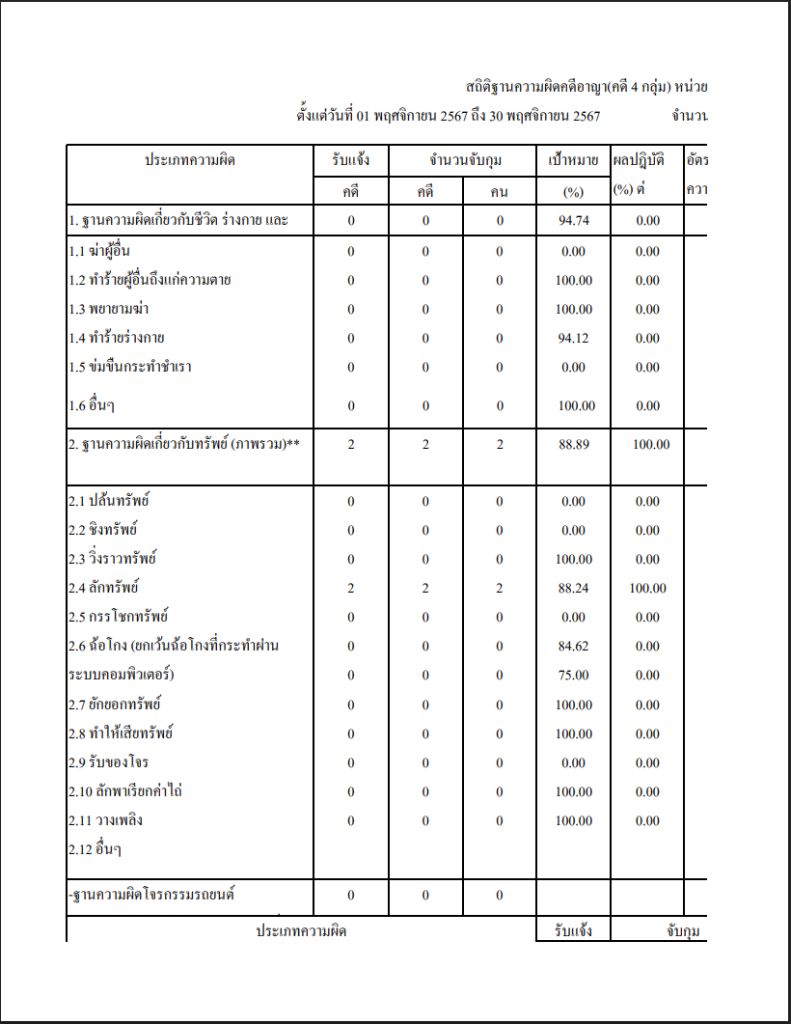 สถิติคดี 4 กลุ่ม ระบบ Crimes พ.ย.67