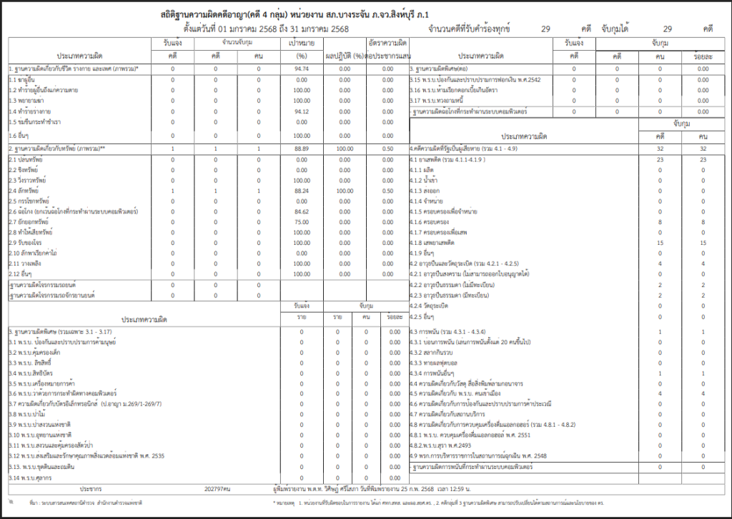 สถิติคดี 4 กลุ่ม ระบบ Crimes ม.ค.68