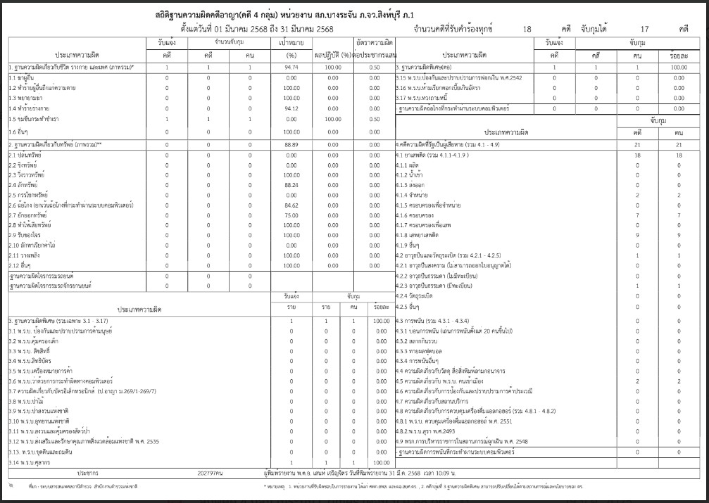 สถิติคดี 4 กลุ่ม ระบบ Crimes มี.ค.68
