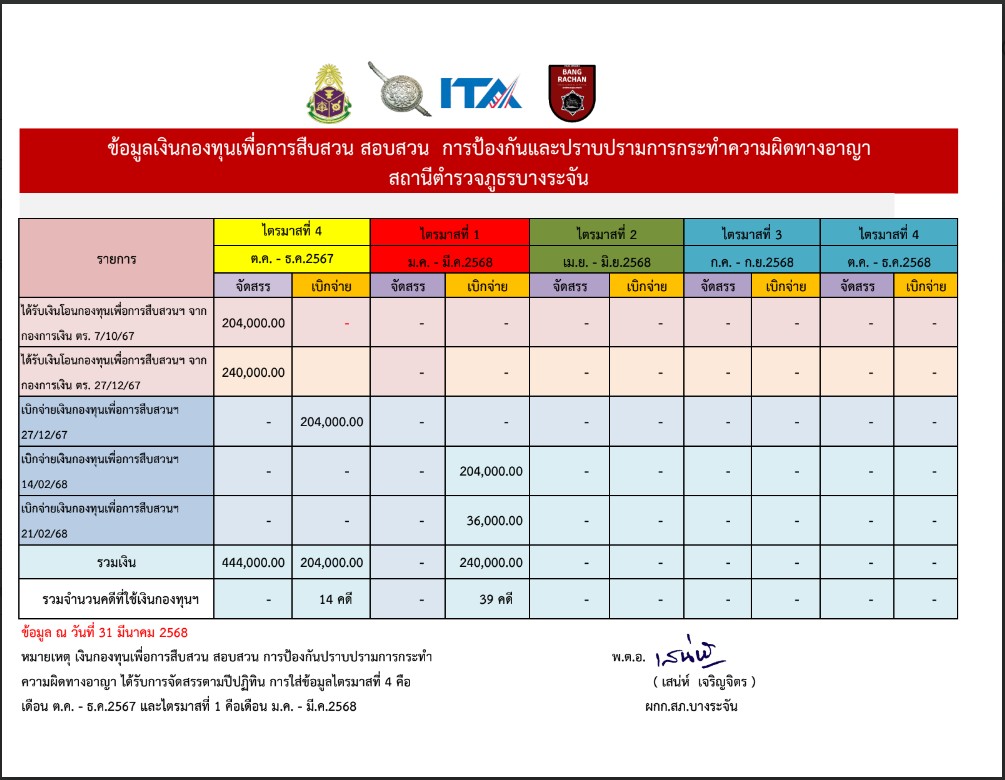 O13 ข้อมูลเงินกองทุนเพื่อการสืบสวน สอบสวน การป้องกันเเละปราบปรามการกระทำผิดทางอาญา