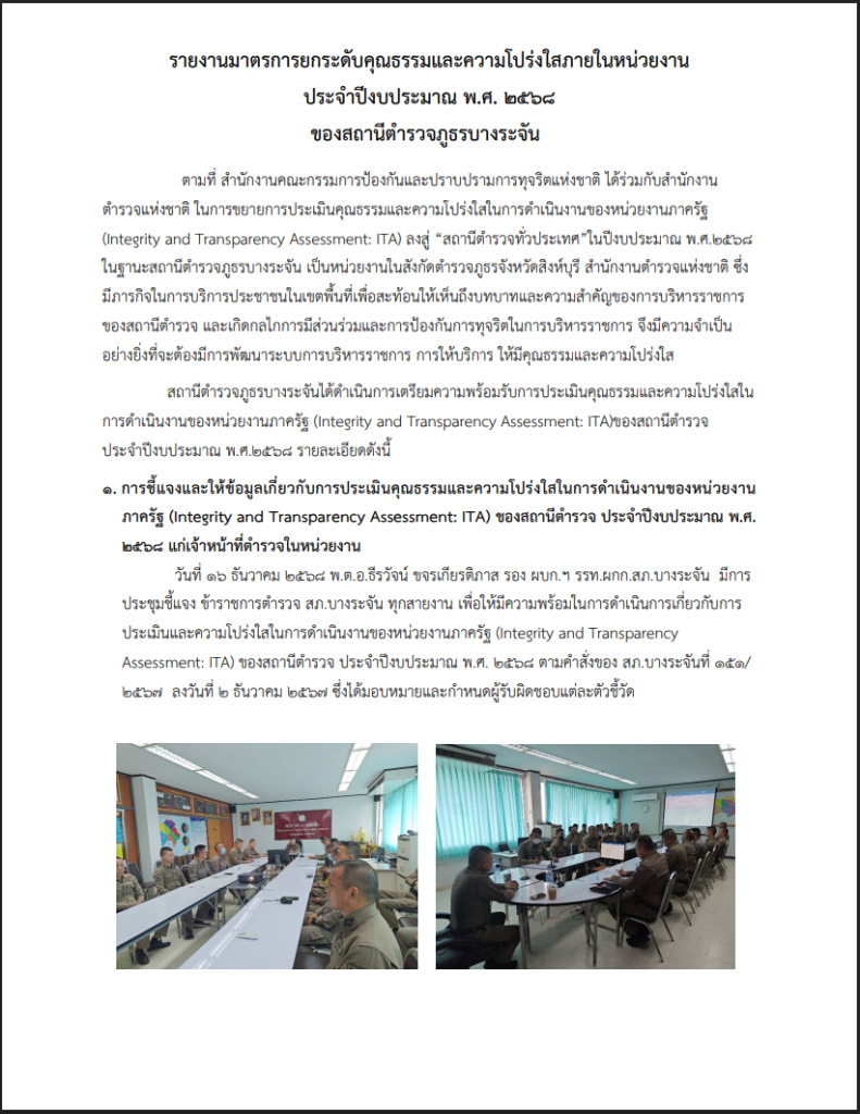 O25 การรายงานผลการดำเนินการตามมาตรการการยกระดับคุณธรรมและความโปร่งใส่ภายในหน่วยงาน